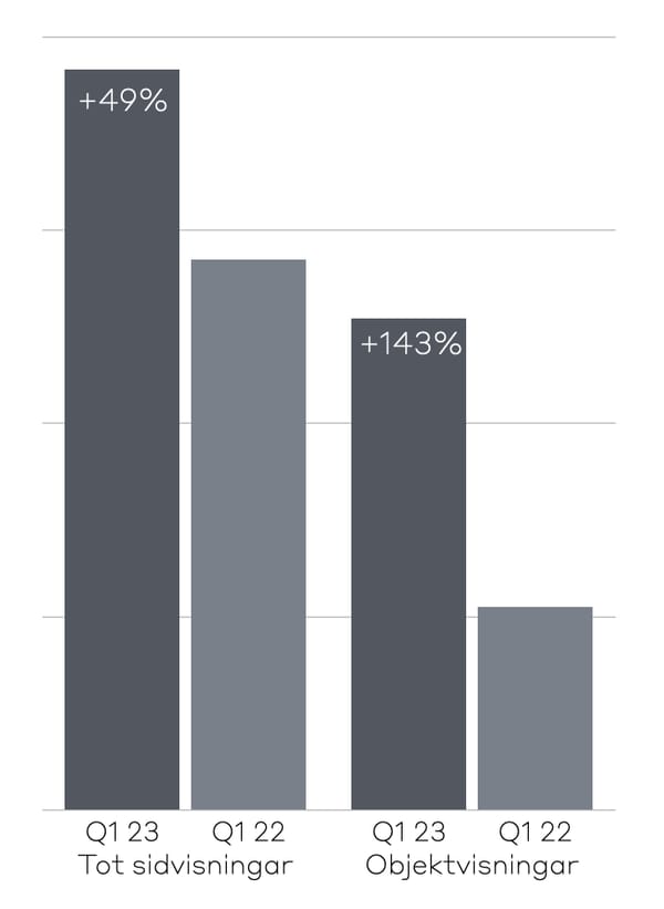 Sidvisningar totalt vs objektsidor Q1 2023 vs 2022