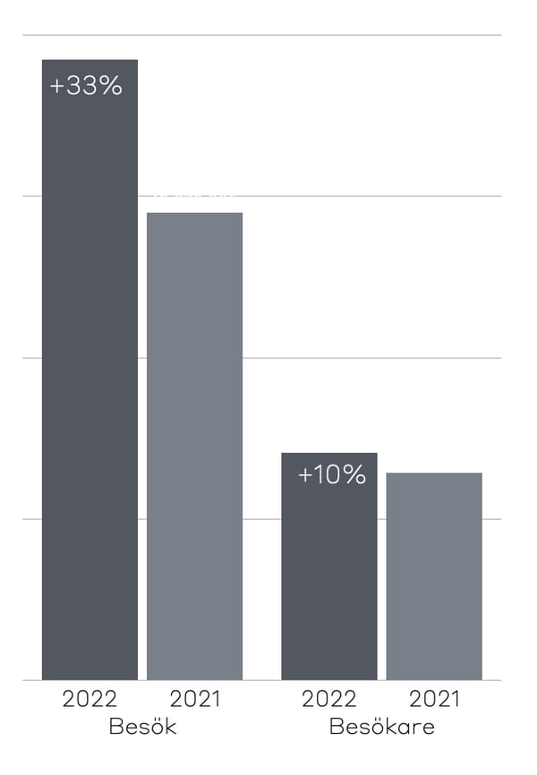Antalet besök 2022 har ökat med ca 33% jämfört med 2021 och antalet besökare har ökat med ca 10% vilket gör oss till en av de största och snabbast växande fordonsmarknadsplatserna i Sverige.